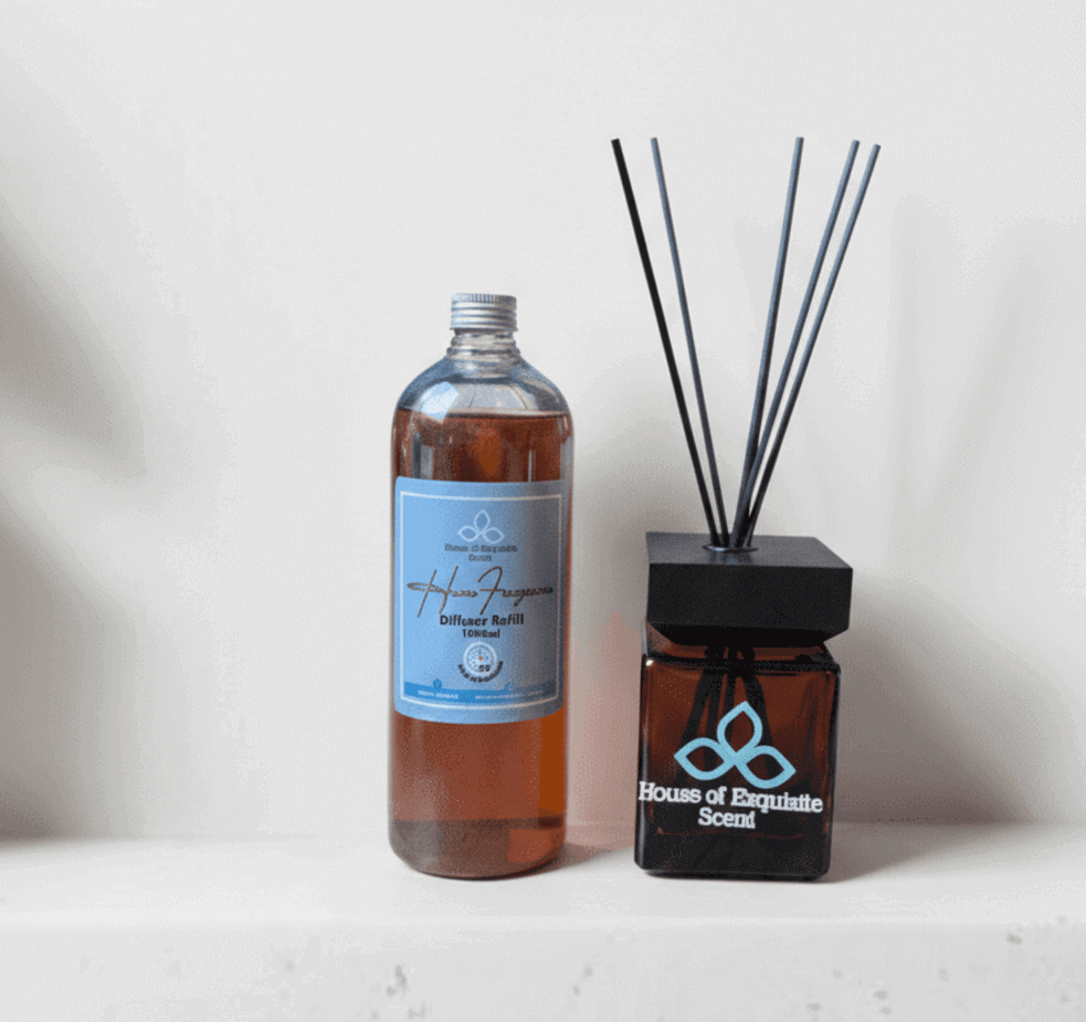 A stylish amber diffuser set that comes with a 500ml jar filled with premium fragrance, reeds, and a 1L refill. Perfect for long-lasting scent and timeless elegance in any space.